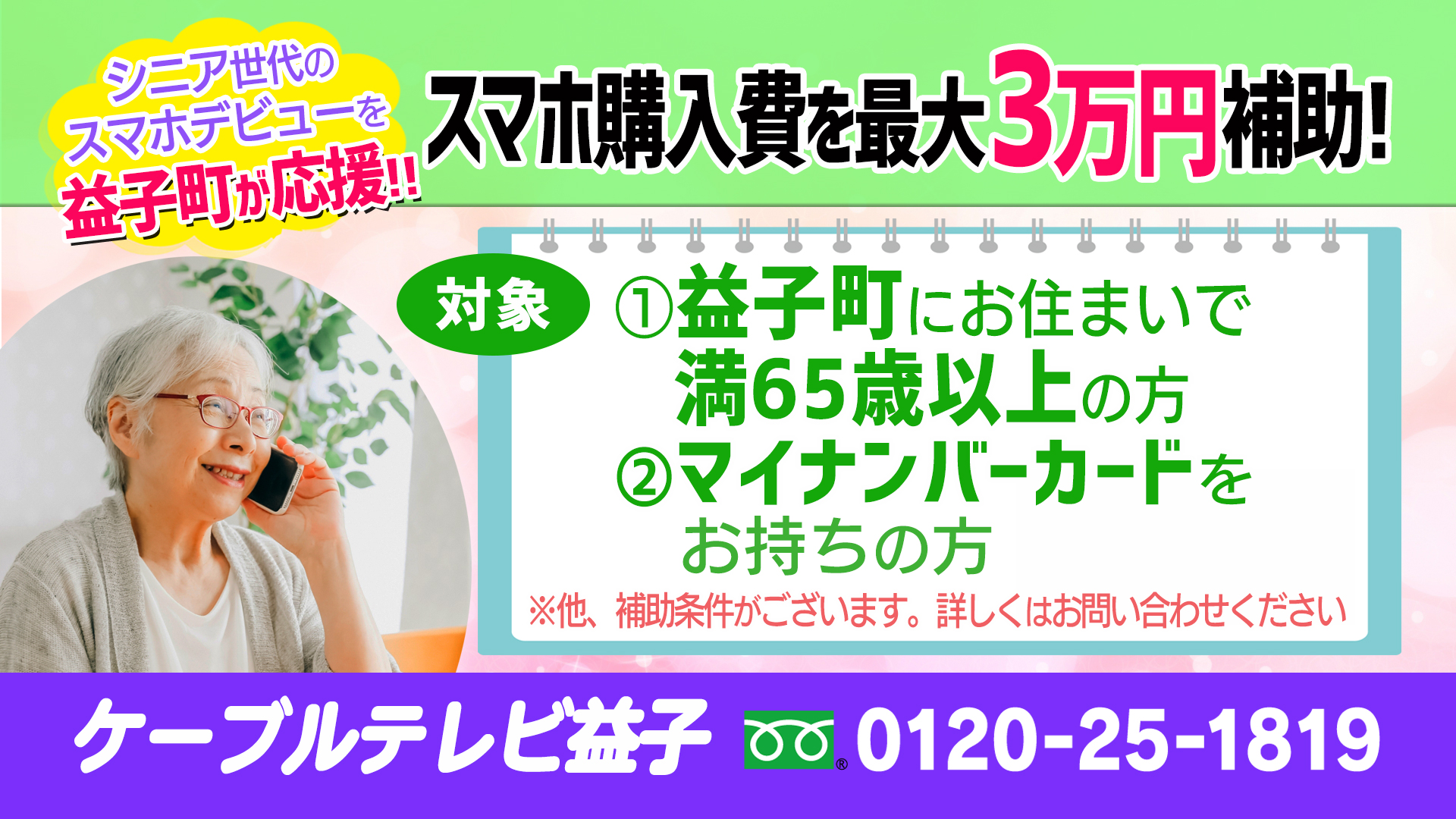 益子町にお住まいの65歳以上の方に朗報です。 スマホをお得に購入できるチャンス!詳しくはお問い合わせください。