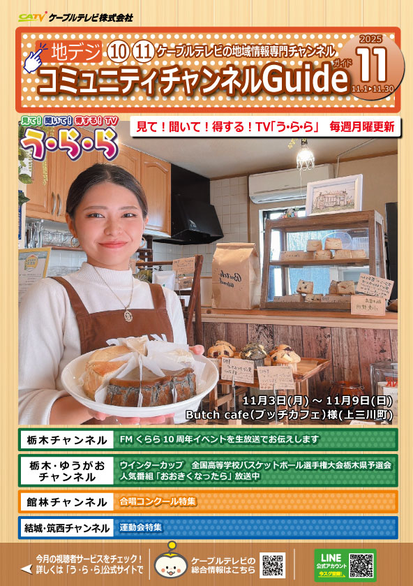 10月20日発行の「コミュニティチャンネルガイド11月号」の表紙に掲載しました「Butch cafe(ブッチカフェ)」様の地名の記載に、誤りがございました。
