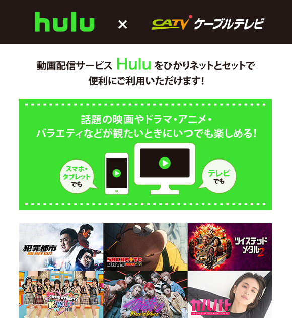 Hulu の月額利用料は、当月のケーブルテレビ利用料と合算してのご請求となります。